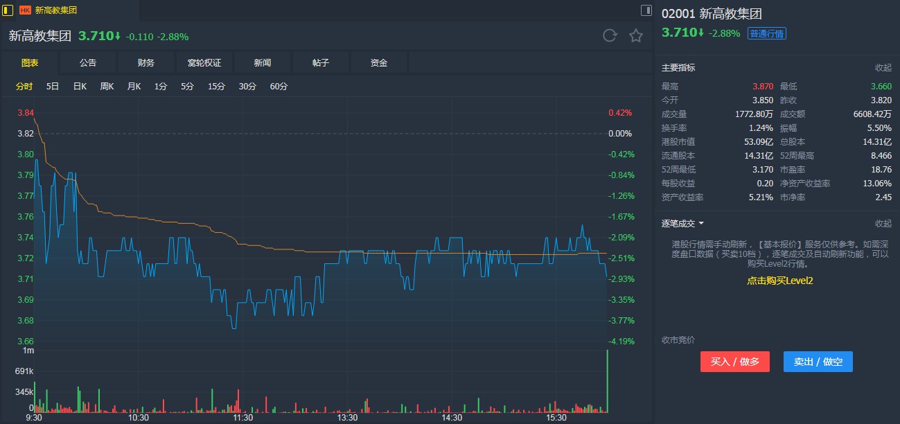 新高教日前公布,以先舊后新方式配售1.1億股,占擴(kuò)大后已發(fā)行股本約7.14%,每股配售價為3.57元,較上日收市價3.93元,折讓約9.2%。所得款項(xiàng)凈額預(yù)期約3.89億元,擬用作償還債務(wù)及一般企業(yè)用途。配售完成后,除承配人外的公眾股東持股比例,將由44.66%降至41.47%。