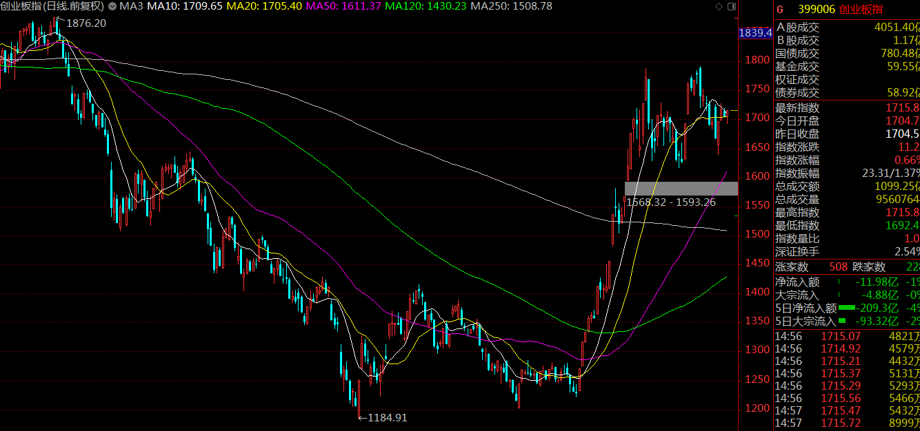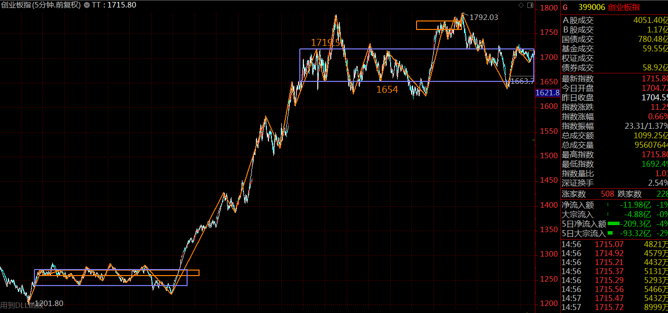 創(chuàng)業(yè)板這里走弱了已經(jīng),上周一、周二的調(diào)整打到了中樞下軌,這是一次警告,上拉后始終不能站上中樞上軌,是為弱勢,本周關(guān)注1654點的支撐,謹防第三類賣點的出現(xiàn)。