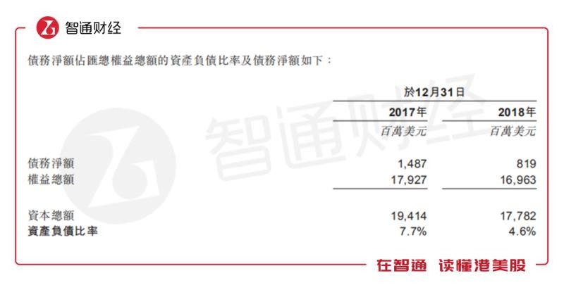 好在公司債務(wù)凈額在2018年已經(jīng)從2017年的14.98億元下降至8.19億元,而債務(wù)凈額占匯總權(quán)益額的資產(chǎn)負債比率也由7.7%降至4.6%。