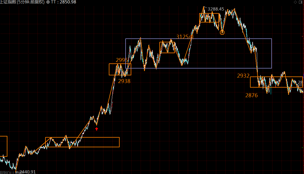 下圖為上證指數(shù)五分鐘級別走勢結(jié)構(gòu),第三類賣點(diǎn)已過,第一類買點(diǎn)正在構(gòu)建中,預(yù)計(jì)最差的情況,周一周二即可走完這波調(diào)整走勢,第一目標(biāo)回補(bǔ)上方3050處的貿(mào)易戰(zhàn)缺口。