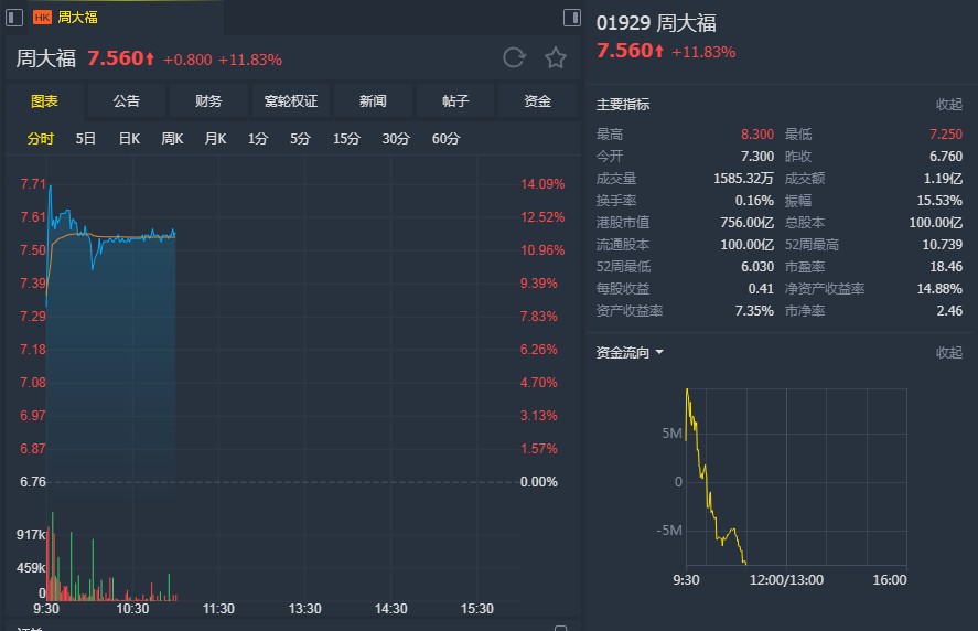 匯豐預(yù)期,由于對零售維持審慎,周大福今年度零售收入可能只有低單位數(shù)增長,總收入增長8%,低于管理指引,但毛利率改善后,預(yù)計今年度純利將上升17%。(任白鴿)