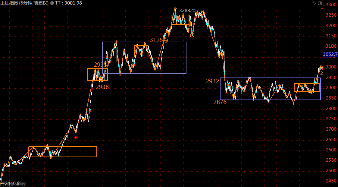 下圖為上證指數(shù)五分鐘級(jí)別走勢(shì)結(jié)構(gòu)。目前已正式突破5月6日開(kāi)始構(gòu)建的三十分鐘中樞,目前在5分鐘的上漲趨勢(shì)中,未有結(jié)束的征兆,投資者宜全力做多,直至出現(xiàn)五分鐘上漲趨勢(shì)背馳為止,按壓力位看,大約在3050點(diǎn)附近。風(fēng)險(xiǎn)控制線2932點(diǎn)。