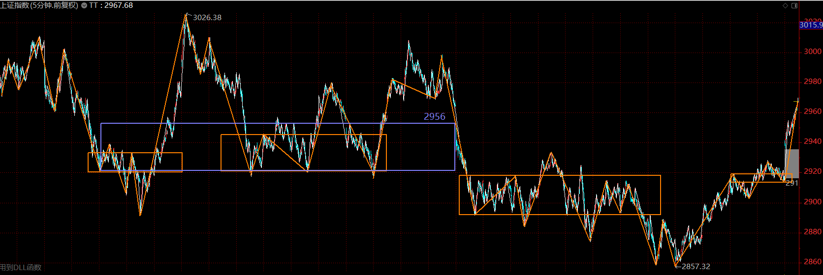 上周市場用前四天的時(shí)間,完成了這一輪五分鐘上漲趨勢的第一個(gè)中樞構(gòu)建,是一個(gè)奔走型的中樞,隨后在周五開始了主升階段。值得欣喜的是,市場終于在2956這個(gè)大關(guān)口放量了,并且一舉突破,預(yù)計(jì)在2956到3000點(diǎn)這40點(diǎn)的空間內(nèi),市場將會(huì)完成五分鐘上漲第二個(gè)中樞的構(gòu)建,并且橫盤將其擴(kuò)展為30分鐘級(jí)別,時(shí)間周期大約是極點(diǎn)出現(xiàn)后的10到15個(gè)交易日。這將是投資者積極調(diào)倉換股,耐心布局年報(bào)行情的最佳時(shí)期。