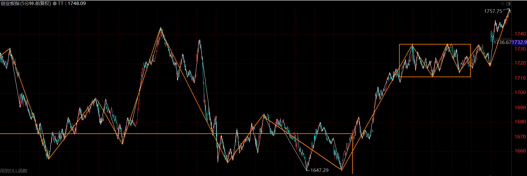 創(chuàng)業(yè)板本周創(chuàng)下八個(gè)月新高,完成了歐奈爾杯柄的一次突破,下一步要面臨1792點(diǎn)的前高大壓力位。日K線看,這個(gè)位置需要橫盤整固一段時(shí)間,同時(shí)也利于構(gòu)建下方中樞的第三類買點(diǎn)。小級(jí)別看,同樣是運(yùn)行良好的多頭趨勢,目前在背馳段里,本周初的回踩只要不跌破1735點(diǎn),均可以安心持股待漲。