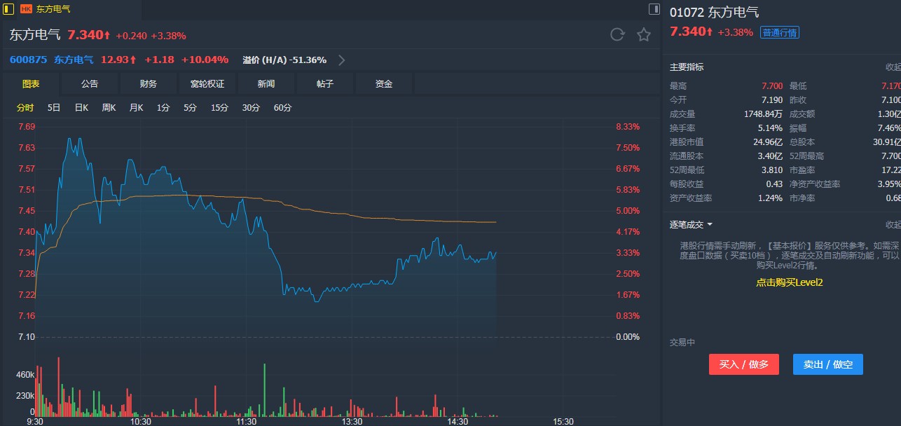 中金發(fā)表研究報告,東方電氣(01072)2018年表現(xiàn)符預期,考慮到風電、核電業(yè)務有望實現(xiàn)增長,將2019年盈利預測上調12%到14.4億元人民幣。