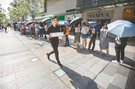 天氣炎熱,“網(wǎng)紅店”會為排長隊的顧客們提供冰水解暑。