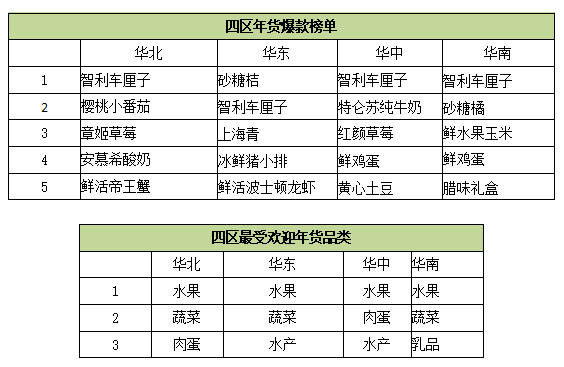 在已經(jīng)上線的每日優(yōu)鮮的華南年貨頻道里,水果、肉蛋、酒水等品類占據(jù)“大半壁江山”,特別是高端水果,占比從去年的20%提升到50%,最受喜愛的有車?yán)遄?、上上簽砂糖桔,此外受華南人民歡迎的年貨還包括雞蛋、箱裝牛奶和零食大禮包等。