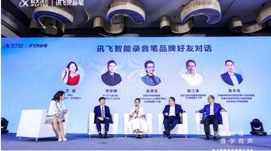 人工智能商業(yè)化專家吳霽虹,北京大學(xué)光華管理學(xué)院教授路江涌、艾問(wèn)創(chuàng)始人、知名創(chuàng)業(yè)者和主持人艾誠(chéng),中國(guó)聯(lián)通終端與渠道支撐中心副總陳豐偉作為訊飛智能錄音筆的品牌好友出席了發(fā)布活動(dòng)并從各自的角度闡述了人工智能與企業(yè)高效進(jìn)化、個(gè)人效率提升的密切關(guān)系。
