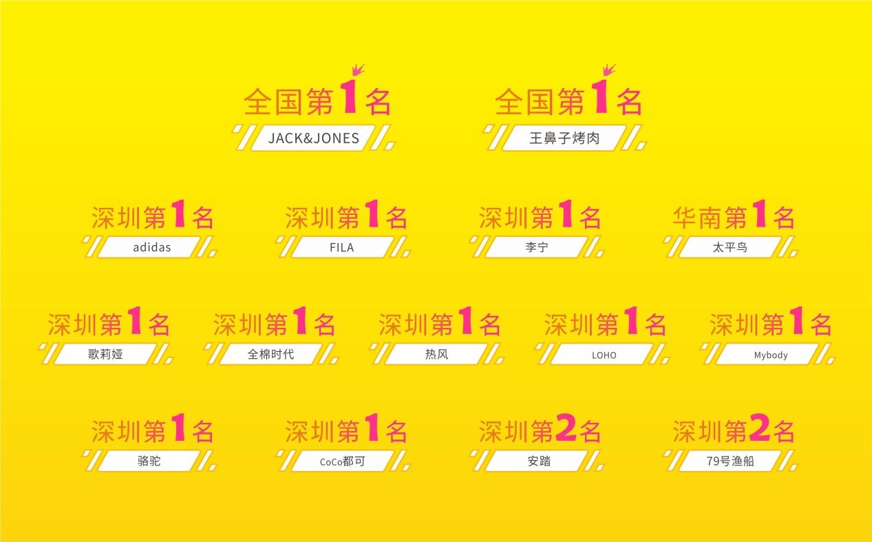 開業(yè)期間,壹方天地B區(qū)與已開業(yè)的A區(qū)、E區(qū)聯(lián)動,舉辦了一系列活動,獲得開業(yè)活動三天客流量突破69.3萬人次,銷售額超5000萬的佳績。開業(yè)期間,品牌商戶的經(jīng)營業(yè)績也極為亮眼,NIKE、WESTLINK、YISHION、SANFU、79號漁船等多個品牌銷售額位居深圳乃至全國前列。其中,adidas、FILA、李寧、太平鳥、歌莉婭、全棉時代、熱風(fēng)等品牌勇奪深圳第一,JACK&JONES和王鼻子烤肉更是獲得全國第一的好成績。