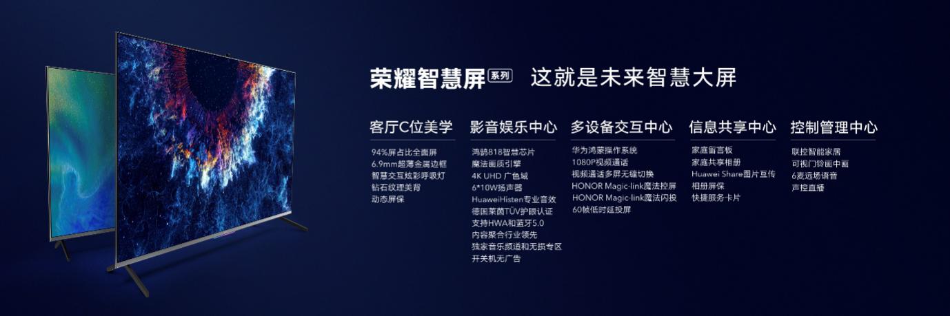 榮耀總裁趙明表示,榮耀致力為年輕人打造智慧生活雙中心,手機是個體的中心,榮耀智慧屏是家庭情感中心。它將承擔家庭中的更多角色,成為影音娛樂中心、多設(shè)備交互中心、信息共享中心和控制管理中心。