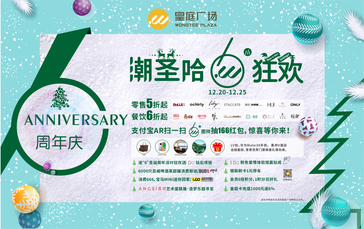 六周年慶期間,深圳皇庭廣場(chǎng)攜手場(chǎng)內(nèi)200余家優(yōu)質(zhì)商戶、銀聯(lián)等進(jìn)行資源合作,并通過(guò)自有小程序,組合線上引流包,啟動(dòng)支付寶AR掃碼抽L(zhǎng)V、華為手機(jī)、166元現(xiàn)金紅包及商戶百萬(wàn)代金券驚喜;網(wǎng)紅餐飲、時(shí)尚零售折扣低至冰點(diǎn);更有迷“6”周年派對(duì)狂歡送百萬(wàn)好禮,寶馬MINI送回家等驚喜活動(dòng),期待與你在皇庭的光影空間里拉近距離,一起吃喝玩樂(lè),嗨購(gòu)潮玩,6周年的故事期待有你參與!