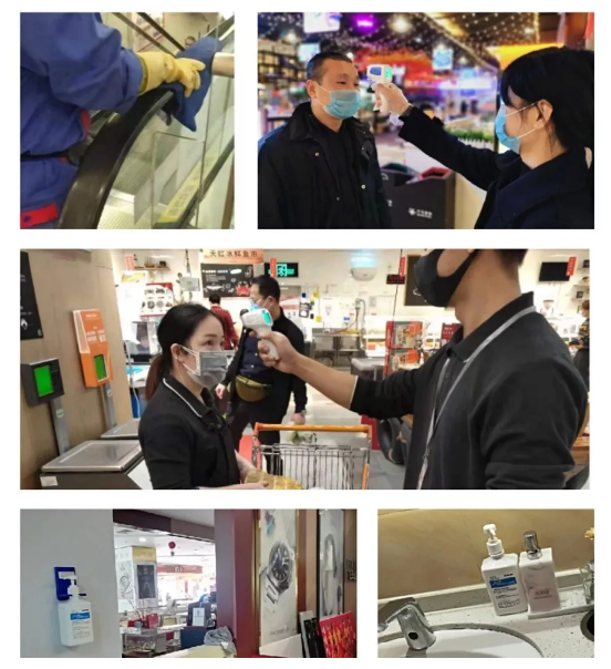 由于網(wǎng)上“配送到家”服務(wù)訂單量的劇增,在保障網(wǎng)上訂單及員工的安全性方面,蘇寧家樂福也做了十足防范措施。首先,蘇寧家樂福要求所有工作人員一律佩戴口罩,并通過體溫檢測(cè)才能上崗。其次,門店每天至少會(huì)在3個(gè)時(shí)間段使用84消毒液對(duì)賣場(chǎng)所有公共區(qū)域以及辦公區(qū)、員工餐廳等區(qū)域進(jìn)行清潔衛(wèi)生消毒,并對(duì)手提籃、購物車、電梯扶手、垂直梯按鈕每隔2小時(shí)進(jìn)行清潔消毒;再次,賣場(chǎng)的熟食產(chǎn)品加蓋加罩售賣,安排專人看管,禁止顧客直接用手觸摸,停止提供“試吃”及“餐飲堂食”服務(wù)。所有快遞、外賣小哥必須佩戴口燥,并通過體溫檢測(cè),在門店入口用消毒凝膠清潔后方可提貨。