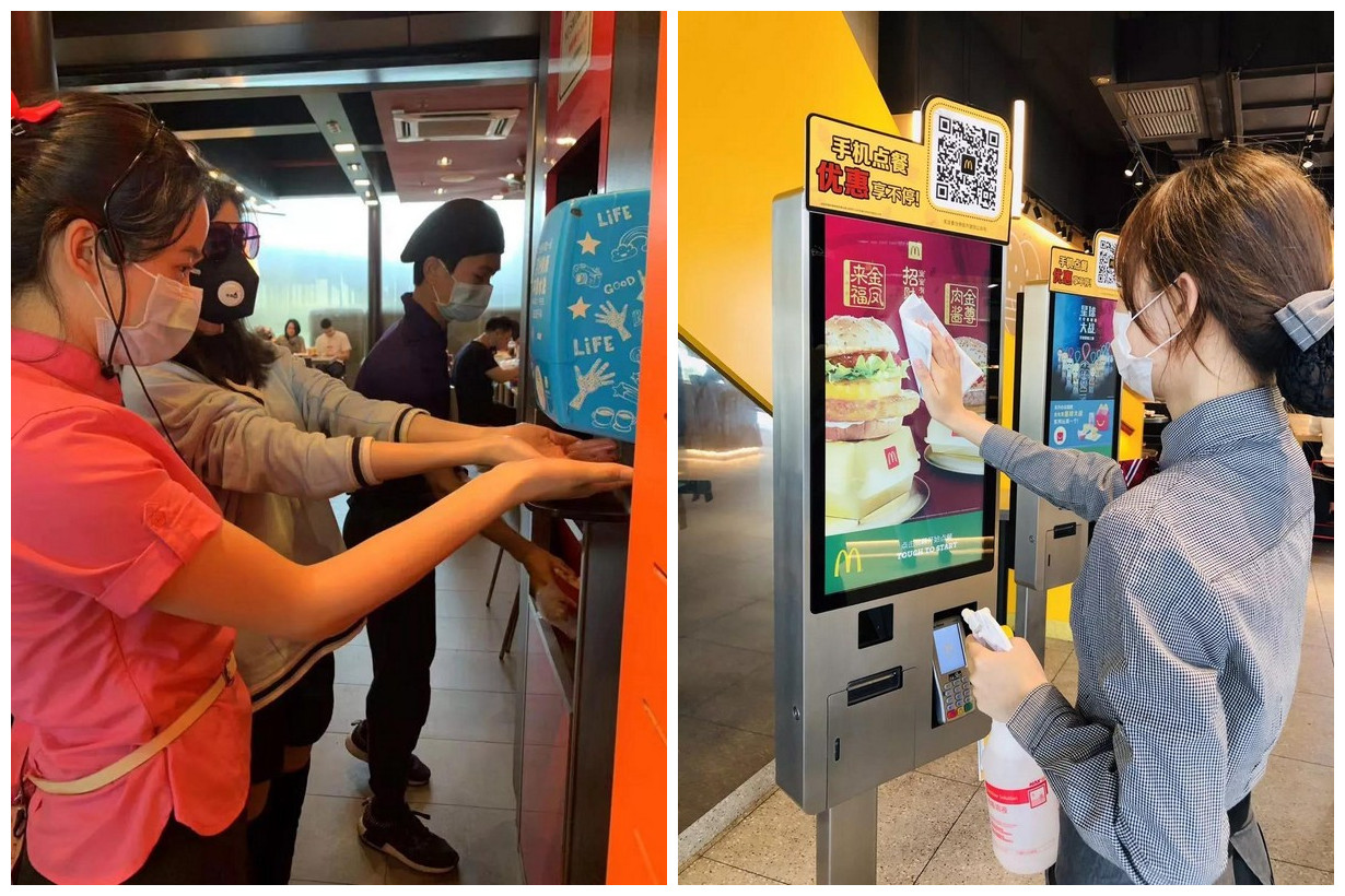 據(jù)了解,目前全國(guó)所有的麥當(dāng)勞餐廳啟動(dòng)上班員工測(cè)溫流程,并提高員工洗手消毒頻次,全國(guó)餐廳全員佩戴口罩。在餐廳為顧客提供免洗洗手液,對(duì)所有餐廳的通風(fēng)系統(tǒng)和顧客常接觸的設(shè)施,強(qiáng)化消毒并增加頻次,包括大門把手、自助點(diǎn)餐屏、樓梯扶手、柜臺(tái)臺(tái)面、取餐區(qū)、桌椅、餐盤、兒童椅、兒童樂園等。