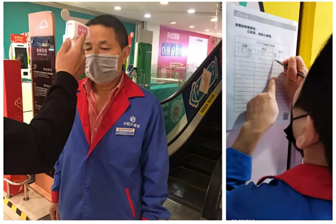 而對(duì)于員工防控管理,天虹也第一時(shí)間擬定了《關(guān)于天虹同事自我防護(hù)預(yù)防新型冠狀病毒感染的溫馨提示》、《新型冠狀病毒預(yù)防專項(xiàng)預(yù)案》、《員工出行信息填報(bào)表》等制度及規(guī)章,加強(qiáng)對(duì)員工的自我保護(hù)和防范培訓(xùn),嚴(yán)格要求員工必須戴口罩上班,同時(shí),在員工通道必須測(cè)量體溫正常方可進(jìn)場(chǎng)。