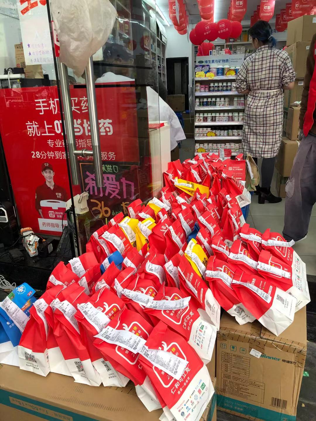 首先他們不惜成本在春節(jié)期間保持覆蓋全深圳的24家門店線上線下營業(yè)(08:30-22:30),并于1月28日(初四)全面恢復覆蓋全深圳的線上24小時營業(yè)、28分鐘送藥到家服務,每天有40多名叮當快藥的專職配送小哥不分晝夜的將藥品送出。