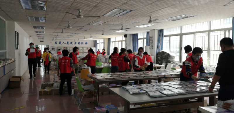 在課室、在體育場、在走廊,甚至就在學校的馬路邊,深圳郵政人與老師們一起,將一份份承載著知識與希望的課本分類擺放、認真核對,揀書、裝袋、打包、貼單、搬運,一個個環(huán)節(jié)銜接默契。