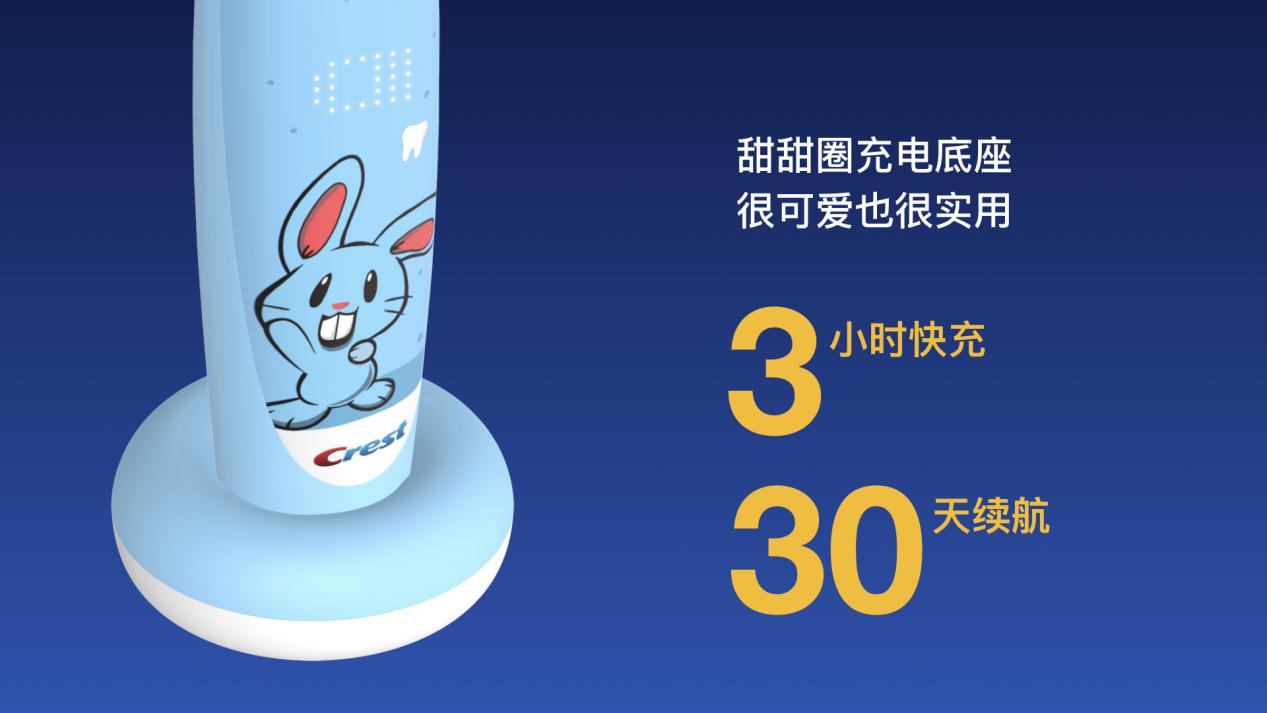 S7000K智能音樂兒童電動牙刷還配備甜甜圈充電底座,做到了3小時(shí)快速充電,實(shí)現(xiàn)30天續(xù)航的目的。