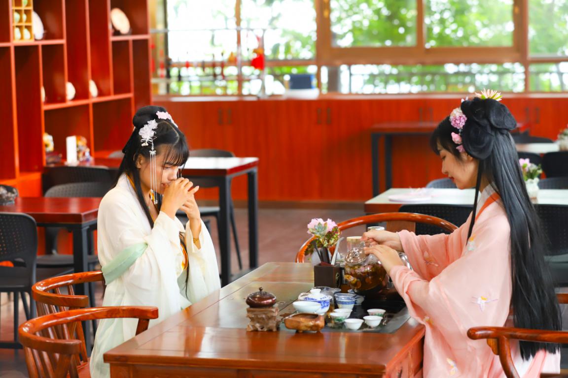 漢服唯美的歸宿,莫過于在充滿中華元素的氛圍內(nèi),與同袍攜手與共,做充滿儀式感的風(fēng)雅事。觀音山還為同袍安排了“聞香、品茶、聽琴、論道”環(huán)節(jié),讓各位同袍在茶香中了解傳統(tǒng)文化精髓,感知生活的智慧。漢服愛好者們在古韻唯美的茶座中,聞琴音,品香醇清茶,以詩為媒,吟詩作對,悠悠長蕭一曲、韻味古詞一則,坐而論道,其樂融融,也傳遞出傳統(tǒng)文化之美,現(xiàn)場同袍或靜心欣賞,或用手機(jī)記錄別樣的視聽覺盛宴。