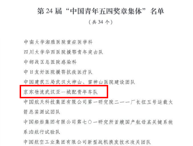 面對突如其來的新冠肺炎疫情,廣大青年在各行業(yè)、各領(lǐng)域履職盡責、團結(jié)奮斗,積極投身防控工作一線,為保持經(jīng)濟平穩(wěn)發(fā)展和社會和諧穩(wěn)定作出了突出貢獻,今年的中國五四青年獎?wù)滦略隽丝挂哳惇勴椩u選。在公布的34個集體類獲獎名單中,京東物流武漢亞一城配青年車隊是唯一來自物流行業(yè)的集體。