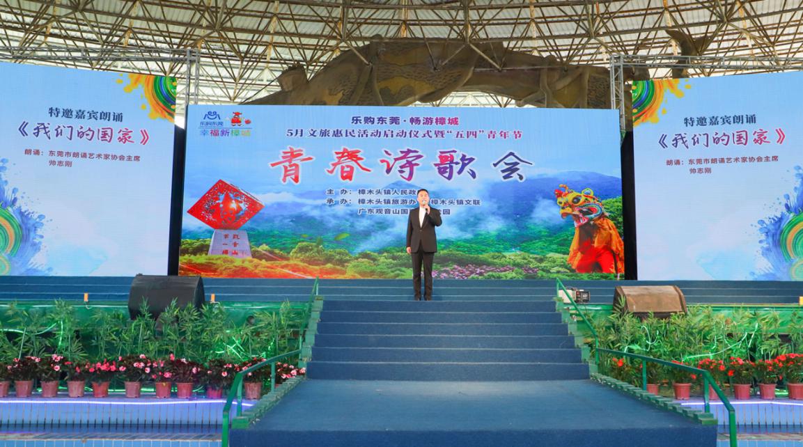 為慶?!拔逅摹鼻嗄旯?jié),青春詩歌會上,樟木頭鎮(zhèn)文聯(lián)與觀音山景區(qū)共同組織了一群身懷才藝的青年人士,自編自演,通過詩歌朗誦、歌舞表演,組成一場豐富多彩的文藝節(jié)目給現(xiàn)場游客。