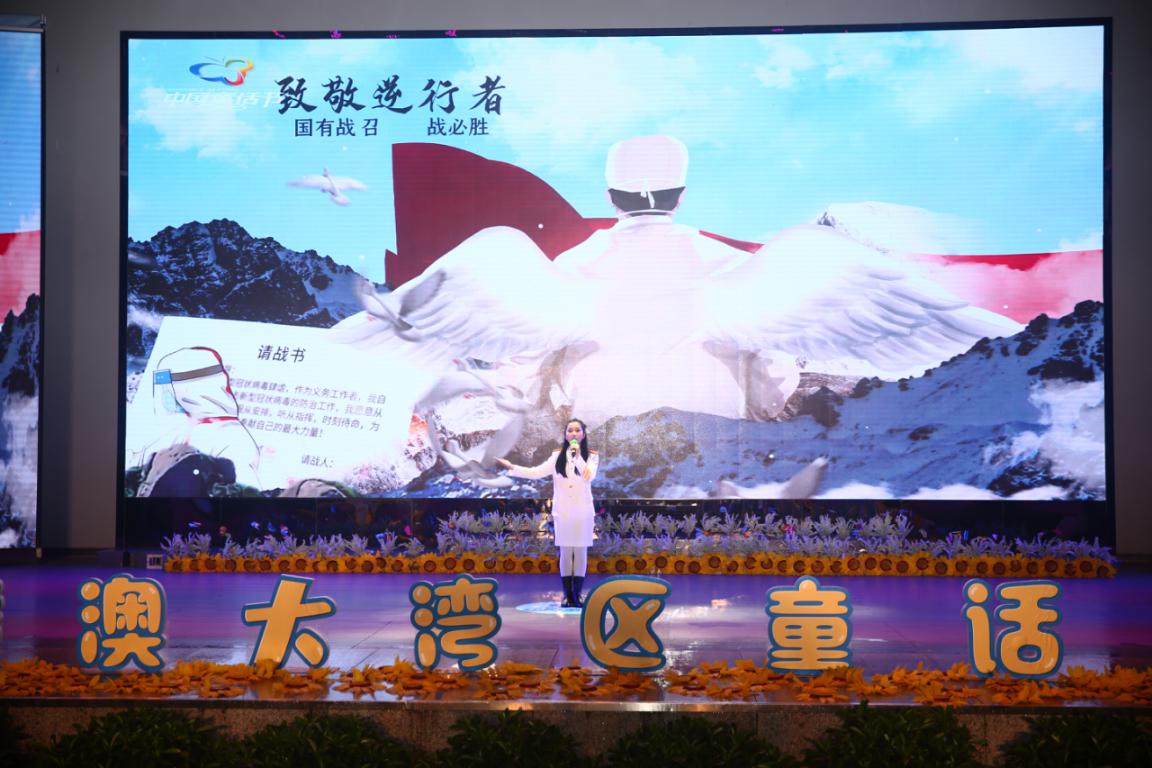 本次金獎?wù)寡莼顒佑芍袊捁?jié)組織委員會、深圳讀書月組委會辦公室、深圳市青少年活動中心聯(lián)合主辦,旨在在特殊時期,展示別樣抗疫,以優(yōu)秀朗誦作品,振奮精神、凝聚力量、為愛發(fā)聲;深圳市教育局辦公室黃菊英處長、深圳市語言文字工作委員會辦公室主任馬慶、深圳讀書月組委會辦公室主任助理、深圳出版集團綜合事業(yè)部副部長楊紅、深圳市青少年活動中心主任王玨及中國童話節(jié)組織委員會秘書長、深圳市童話藝術(shù)團團長張明珠等嘉賓為選手代表頒獎。