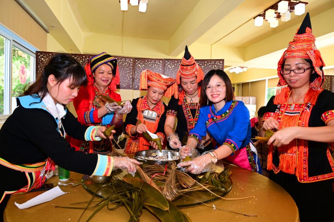 端午假期即將來(lái)臨,觀音山景區(qū)內(nèi)節(jié)日氛圍濃厚,不少游客搶先打卡。其中,一群身著特色服飾的人群吸引了眾人眼球,他們是來(lái)自廣東、廣西、云南、韶關(guān)等地區(qū)旅居在東莞的瑤族人,身著特色手繡瑤族服飾走進(jìn)觀音山,展示獨(dú)特的瑤族風(fēng)情。他們還現(xiàn)場(chǎng)包起瑤族特色粽子、跳瑤族傳統(tǒng)舞蹈、丟花包、登高賞景打卡同心鎖、呆萌文化藝術(shù)長(zhǎng)廊等,在休閑登山,迎接著端午節(jié)的到來(lái),場(chǎng)面十分熱鬧,成為了觀音山清幽密林間一道靚麗的風(fēng)景線。