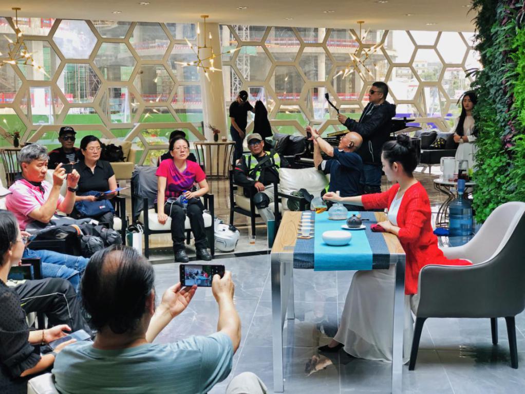 “這是一次狂野機(jī)車與浪漫花海的相遇之旅,亦是一場茶、花和摩旅文化的融合之旅?!背艘则T行的方式感受呈貢的大美風(fēng)光之外,古道鐵騎隊(duì)伍進(jìn)入呈貢滇SHOW中心開展了一場以茶共話的交流活動。云南建投投資出品的云南文旅IP“滇SHOW”,以游客集散和城市微度假的方式為游客提供“安心住、放心購、舒心玩”的數(shù)字化產(chǎn)旅結(jié)合的健康生活目的地,也將是未來呈貢旅游必到的熱門景點(diǎn)。活動現(xiàn)場還以豐富的茶道、茶舞表演開展,騎行隊(duì)員針對文明騎行的摩旅經(jīng)驗(yàn)進(jìn)行交流。