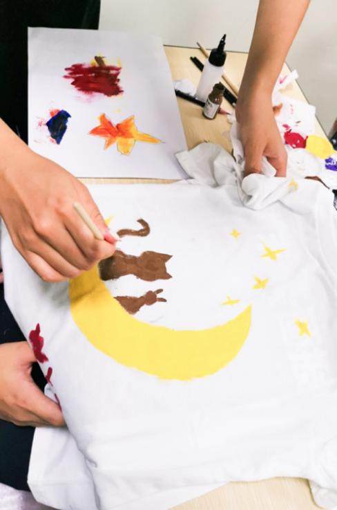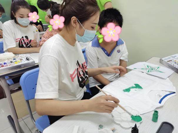 小星星們在康復(fù)中心接受系統(tǒng)的康復(fù)訓(xùn)練,平時也有音樂課、美術(shù)課,不過在T恤上涂鴉還是第一次。星星是什么顏色的呢?在這些特殊的孩子心中都有自己的答案。10位志愿者小姐姐一對一陪坐在孩子們身邊,以前她們學(xué)習(xí)色彩知識是為了提升專業(yè)能力,而這次是用色彩開啟小星星們的好奇和想象,用色彩的力量點(diǎn)亮他們的小小世界,一起感知愛、表達(dá)愛,傳遞愛,為愛填上溫暖的底色。“這些孩子們很喜歡畫畫,畫畫應(yīng)該是他們溝通世界的另外一種語言?!毙切强祻?fù)中心的老師說。