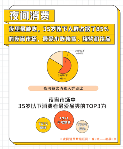 夜間消費(fèi)在周末餐飲消費(fèi)中備受年輕人青睞。《2020周末餐飲堂食消費(fèi)趨勢洞察》顯示,35歲以下群體是周末夜間消費(fèi)的主力,占比近九成,且最愛小吃快餐、燒烤和飲品三大品類。