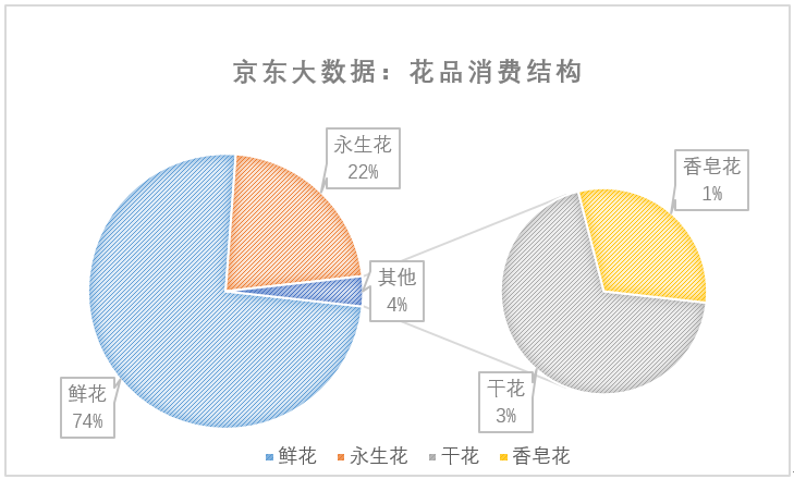 其中四分之三的消費(fèi)者選擇了鮮花,不過(guò)永生花、干花等的銷售額同比也有一定增長(zhǎng)。
