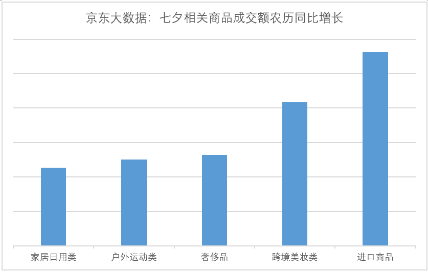 據(jù)京東大數(shù)據(jù),七夕前,家居、戶外、奢侈品等商品品類銷售都有2-3成左右的增長(zhǎng),而跨境和進(jìn)口商品中,飾品和包包最受歡迎。據(jù)京東時(shí)尚居家平臺(tái)事業(yè)群數(shù)據(jù),購(gòu)買七夕相關(guān)商品的消費(fèi)者中,85-95后用戶比去年有大幅增長(zhǎng),比全站平均數(shù)據(jù)高20%左右,增長(zhǎng)最快的省區(qū)是遼寧、河南和四川。