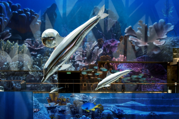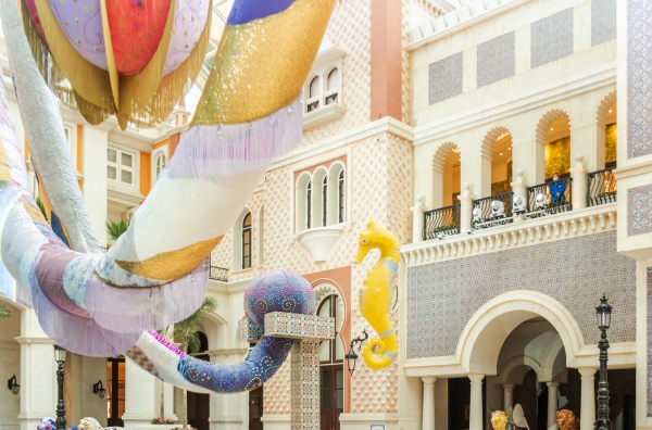 化身為夢幻海洋世界的美高梅,可謂妙不可言,由氦氣球制成、以遙控操控的"飛天海洋魚群"每天下午分4個不同時段現(xiàn)身于澳門美高梅天幕廣場及美獅美高梅視博廣場,每場表演時長10分鐘,適合全家男女老幼共同前來,遠(yuǎn)離喧囂盡情觀賞。制作團(tuán)隊巧妙地構(gòu)思,讓這些飛天海洋生物完美融入美高梅,與場景交相呼應(yīng),視博廣場的LED熒幕背景以深海珊瑚為主題,讓游客恍惚置身于汪洋大海中那般寫意暢泳,來自海洋的獨特神秘?fù)涿娑鴣怼?/p>