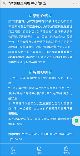 大賽設(shè)置了“打卡新地標(biāo)美陳”、“最亮眼商超美陳”、“時(shí)尚風(fēng)向標(biāo)美陳”、“最活力MAX美陳”、“優(yōu)秀策劃團(tuán)隊(duì)”等獎(jiǎng)項(xiàng),獎(jiǎng)項(xiàng)評(píng)審工作分為線上投票和線下專家評(píng)審兩個(gè)環(huán)節(jié)。線上評(píng)審環(huán)節(jié)由深圳市零售商業(yè)行業(yè)協(xié)會(huì)與新浪深圳共同發(fā)起,設(shè)置了多個(gè)消費(fèi)者投票通道,增強(qiáng)消費(fèi)者互動(dòng),通過(guò)七夕全城打卡選出大眾心目中的最靚美陳。