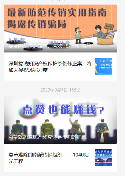 據(jù)統(tǒng)計,2020年,吉華經(jīng)服辦陸續(xù)在微信公眾號推出了6篇打擊傳銷的宣傳推文,在抖音上推出了4個打擊傳銷的宣傳視頻,覆蓋轄區(qū)10w+群眾,在轄區(qū)內(nèi)營造了打擊傳銷、群防群治的良好社會氛圍,取得了良好的宣傳效果。
