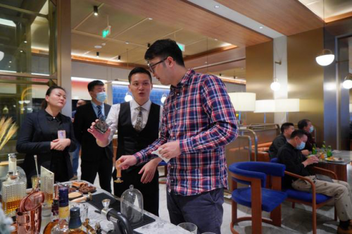 酒店大堂的威士忌酒廊,作為一個開放的社交空間,是水晶未來的特色產(chǎn)品,也是重點打造的客戶體驗之一。到場的加盟商們也在品鑒會期間,親身感受了水晶特色威士忌帶來的精彩體驗。