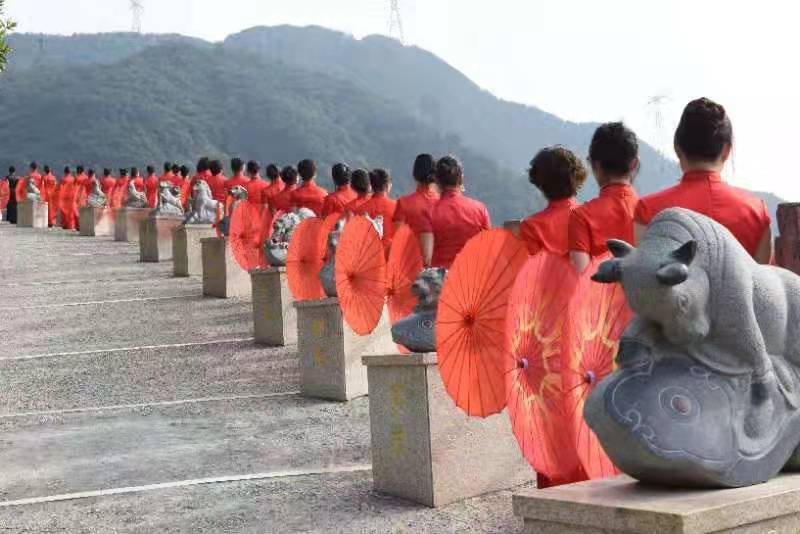 值得一提的是,在觀音山綿延2公里的盤山棧道上,千余名旗袍麗人沿著棧道,盤旋排列而上,喜慶大紅系、青花瓷系列、魅力玫紅系、優(yōu)雅暗黑系等,風格各異,把典雅的旗袍麗人,與悠悠青山相融合,宛若編制在山間彩帶,美如畫卷。旗袍麗人們用優(yōu)雅的儀態(tài),飽滿的精神狀態(tài),展現當代女性的魅力,傳遞積極向上的生活態(tài)度。引領新潮流,向新年獻禮。在自然福山,為自己許下新年心愿,為家人送去祝福。