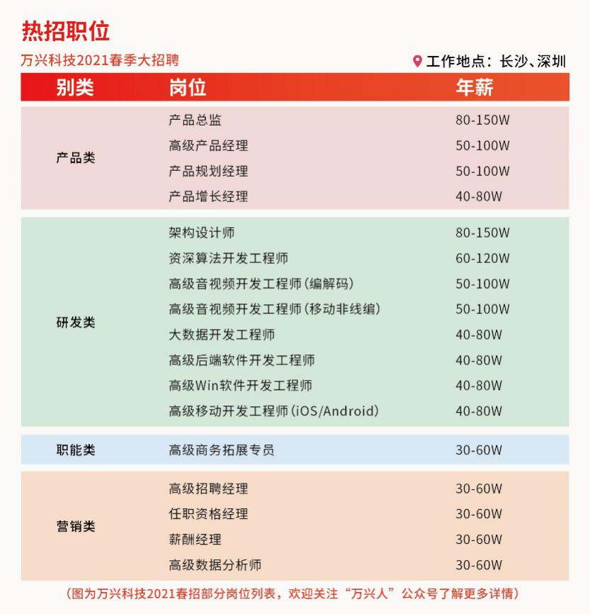 根據(jù)招聘信息顯示,萬興科技此次聚焦“引才入湘”,向全球精英拋出橄欖枝。此外,還大力推行“拿深圳同等高薪,住長(zhǎng)沙宜居房子,干全球軟件事業(yè)”的人才引進(jìn)策略,旨在以一線城市的薪資,匹配一線大廠的薪酬福利,吸引高端人才到長(zhǎng)沙安家置業(yè)。