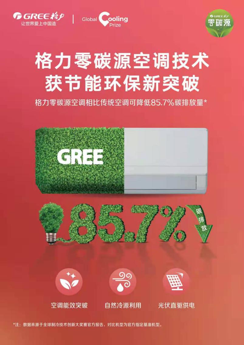 值得一提的是,格力在光伏及空調(diào)壓縮機(jī)等領(lǐng)域的開(kāi)拓創(chuàng)新為“零碳源”空調(diào)技術(shù)的誕生奠定堅(jiān)實(shí)基礎(chǔ)。據(jù)悉,格力“零碳源”空調(diào)技術(shù)集成了先進(jìn)蒸氣壓縮制冷、光伏直驅(qū)、蒸發(fā)冷卻及通風(fēng)等技術(shù),可高效利用可再生能源和自然冷源,使得采用該技術(shù)的氣候自適應(yīng)空調(diào)碳排放低于當(dāng)前傳統(tǒng)空調(diào)的1/5。