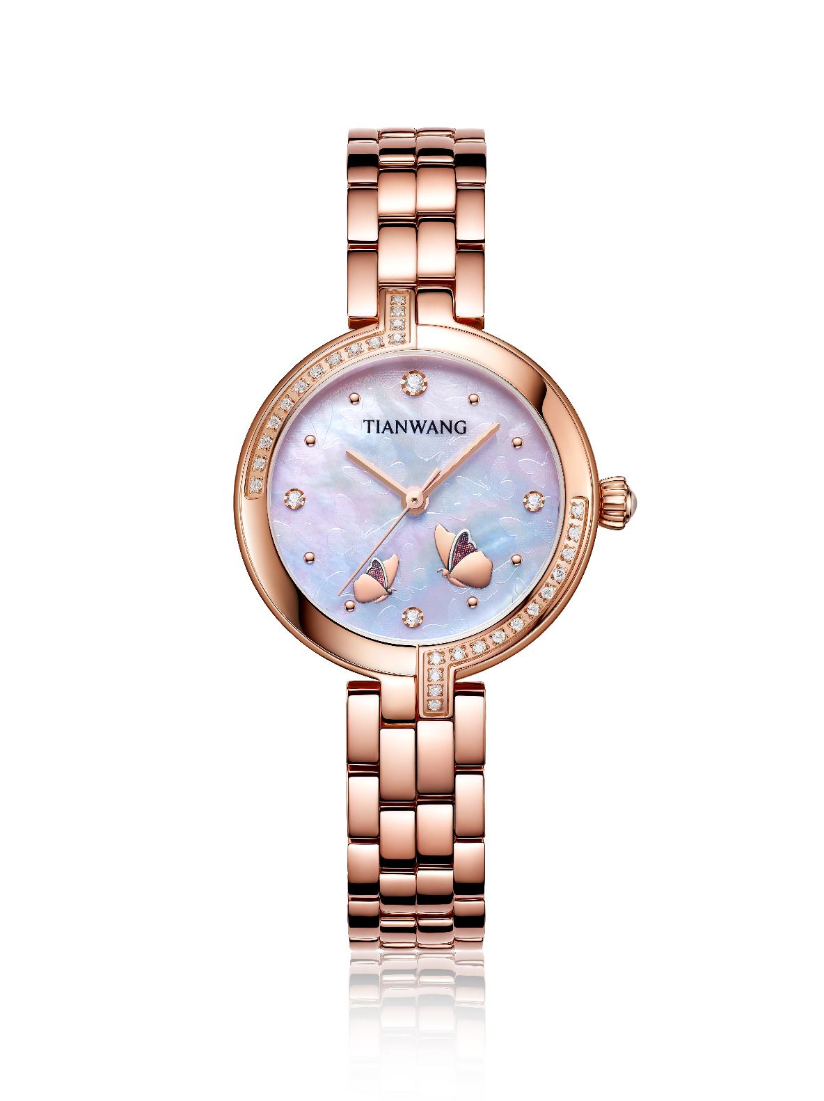 這次合作的腕表,沿襲了天王表的精品品質(zhì)和設(shè)計美學(xué),有點“小確幸”的風(fēng)格,整體很秀氣但是細(xì)節(jié)都誠意滿滿。表是蝴蝶的天空,指針是蝴蝶的舞步。表盤采用蝴蝶壓印貝母,在藍(lán)寶石玻璃表鏡下,兩只立體蝴蝶翩然起舞,人如蝴蝶,蝴蝶像人,都迷戀這花花世界,想要縱情暢游其中。腕表刻度和表圈由璀璨皓石點綴,3點、6點、9點、12點使用較大皓石,使得整個表盤錯落有致,富有層次感。搭配夢幻南瓜把的,極具浪漫色彩。玫瑰金色不銹鋼表殼,給人以優(yōu)雅炫目之感,質(zhì)感鋼帶,光澤度明亮,搭配不銹鋼蝴蝶扣,錦上添花,佩戴效果自然舒適。