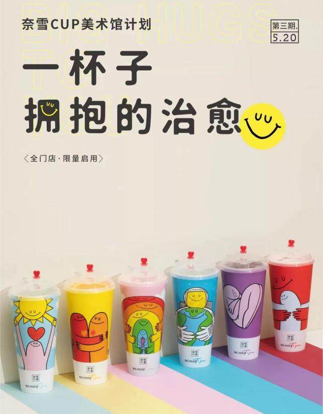 沒有財大氣粗的“品牌集郵”,也沒有投機取巧的抖機靈,奈雪似乎一直都深諳情感營銷的法門,過往也不乏優(yōu)質(zhì)案例。筆者印象最深的是“CUP美術館計劃”中的“瑞獸杯”和“抱抱杯”。前者是在2020與2021新舊年相交之際推出的,以茶飲杯為載體推出六款意頭極好的瑞獸,寓意“瑞獸相伴時來運轉(zhuǎn)”,與消費者新年新氣象的希冀不謀而合。