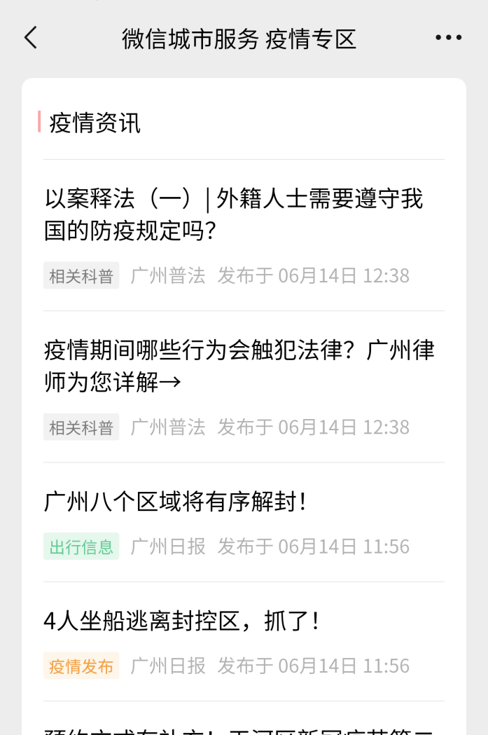 疫情資訊也加入新版專區(qū),專門為廣州市民提供官方權(quán)威的疫情資訊,方便群眾了解所在區(qū)域疫情最新動(dòng)態(tài)及政策解讀信息。