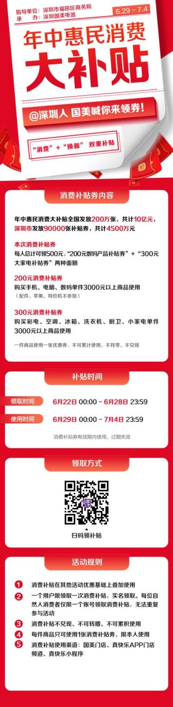 據(jù)了解,本次活動的發(fā)券時間為6月21日至6月28日,用券時間為6月29日至7月4日。全國消費者只需登錄國美線上平臺“真快樂”,找到“門店”頻道(一店一頁),進入“年中消費惠民大補貼”活動輪播頁面,點擊進入活動詳情頁即可領(lǐng)取補貼券。這次補貼將惠及全國總計約200萬人,數(shù)量有限,實名專享,廣大消費者想要薅羊毛一定要趁早!