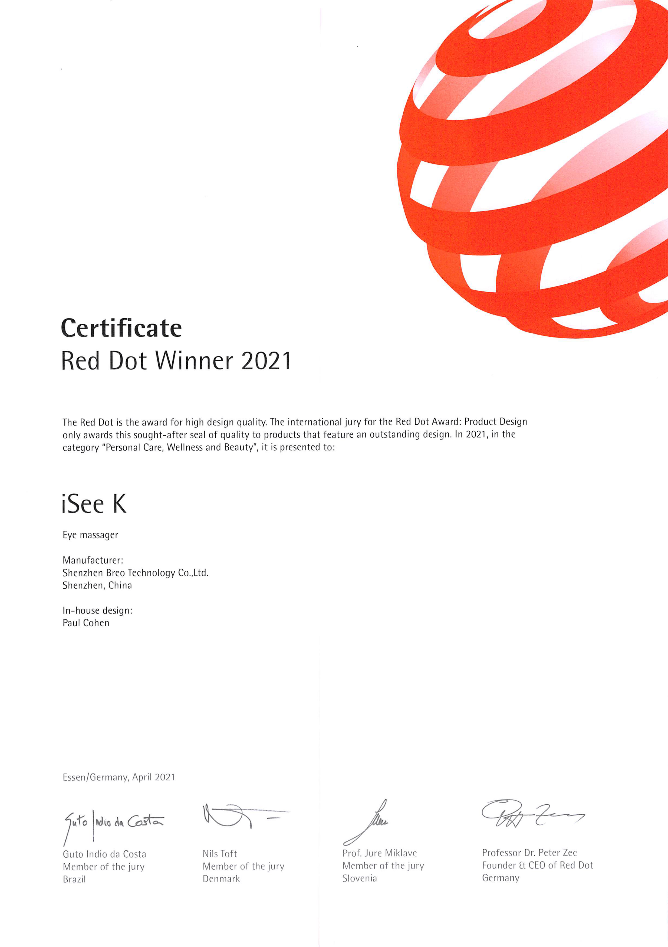 2021年倍輕松眼部按摩器iSee K榮獲紅點(diǎn)設(shè)計(jì)獎(jiǎng)