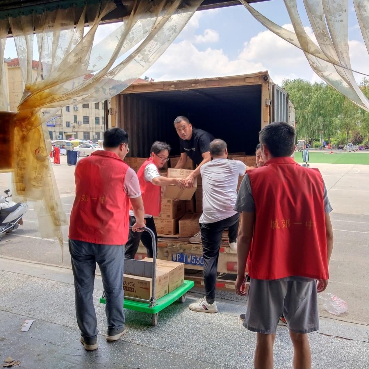 一輛輛承載著愛心的車輛順利到達河南,傳遞著守望相助的溫暖