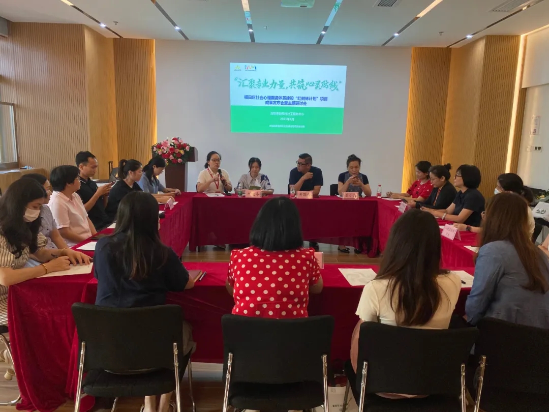 讀特客戶端·深圳新聞網(wǎng)2021 年8月27日訊(記者張俊達(dá)) 26日下午,由福田區(qū)社會(huì)建設(shè)專項(xiàng)資金資助,深圳市新現(xiàn)代社工服務(wù)中心舉辦的“匯聚專業(yè)力量,共筑心靈防線”——福田區(qū)社會(huì)心理服務(wù)體系建設(shè)“紅樹林計(jì)劃”項(xiàng)目成果發(fā)布會(huì)暨主題研討會(huì)在福田社會(huì)要素交易平臺(tái)路演廳舉行。本次活動(dòng)邀請(qǐng)深圳市新現(xiàn)代社工服務(wù)中心專業(yè)副總干事韋曉冬、深圳市心理咨詢行業(yè)協(xié)會(huì)NLP專業(yè)委員會(huì)副主任黃國(guó)榮以及合作站點(diǎn)、合作機(jī)構(gòu)、種子講師、心理咨詢師和專家代表們30余人參加。