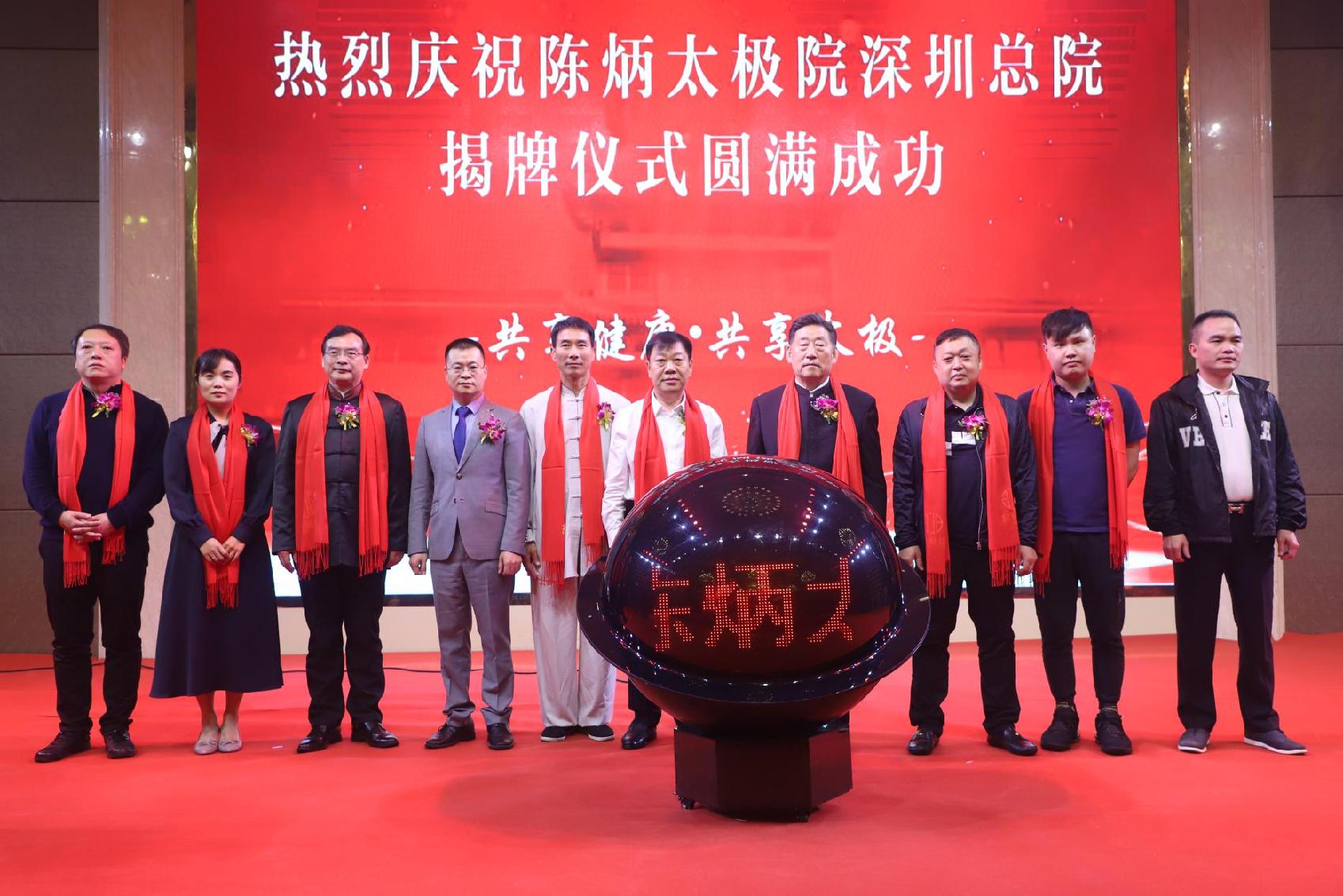 隨后,李培華縣長,王歡歡副縣長,陳式太極拳第十一代傳人陳小旺,陳炳院長,寶利來集團董事長文衛(wèi)沖,寶利來集團總裁文沛榮,陳炳太極院深圳總院院長謝威龍等嘉賓共同為陳炳太極院深圳總院揭牌。
