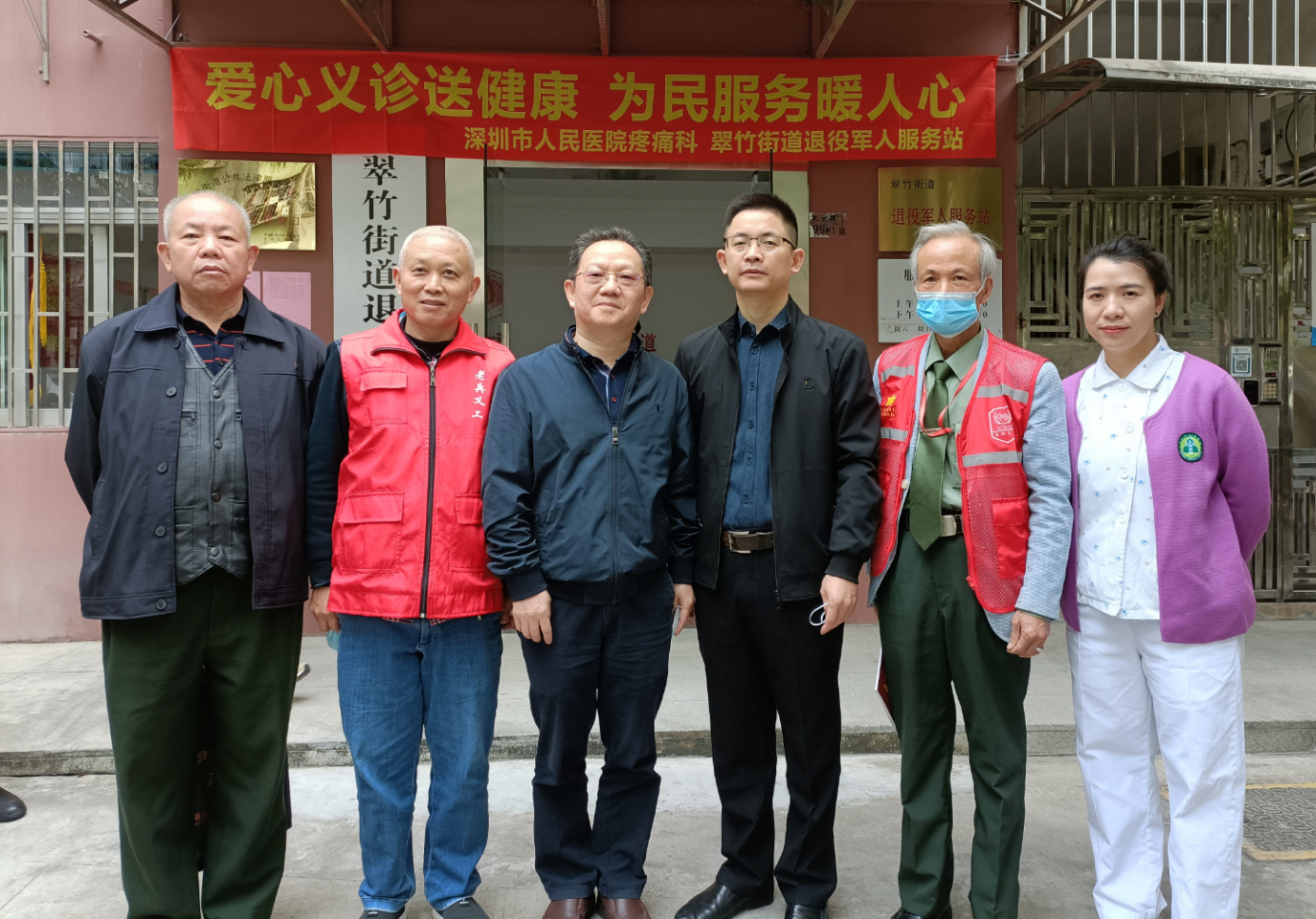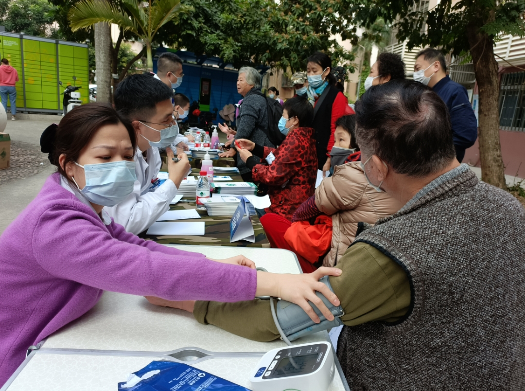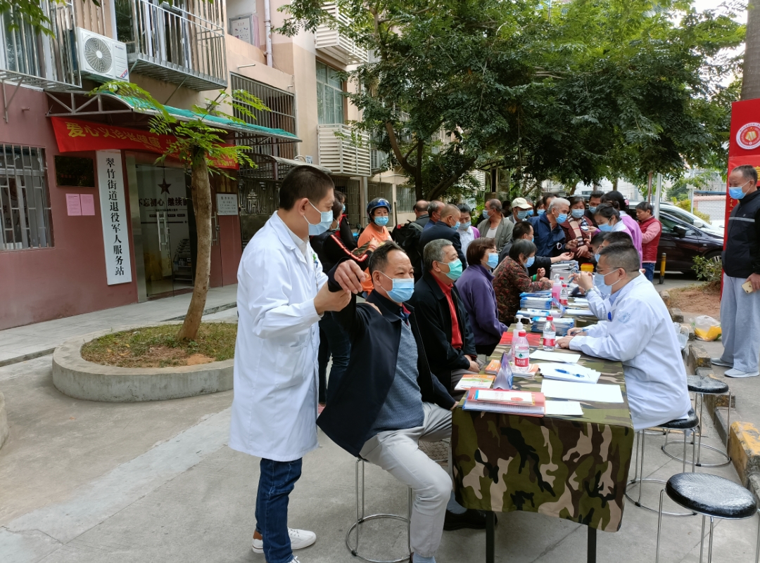 12月19日上午,深圳市人民醫(yī)院疼痛科11名專家與護(hù)士攜帶血壓計(jì)、血糖儀、聽診器、理療儀等儀器到街道退役軍人服務(wù)站開展“愛心義診送健康,為民服務(wù)暖人心”關(guān)愛退役軍人義診活動(dòng)。為防范疫情風(fēng)險(xiǎn),服務(wù)站將健康服務(wù)分區(qū)域并安排工作人員查驗(yàn)健康碼、行程碼、測體溫,參與人員須佩戴口罩方能進(jìn)入活動(dòng)現(xiàn)場。在服務(wù)站門口通風(fēng)處設(shè)置血糖與血壓測量處、專家醫(yī)生坐診處,在老兵活動(dòng)室開展健康知識(shí)講座,在黨建活動(dòng)室和老兵談心室開展身體理療服務(wù)。所有服務(wù)同時(shí)開展,退役軍人和居民自主決定參與順序,避免扎堆。