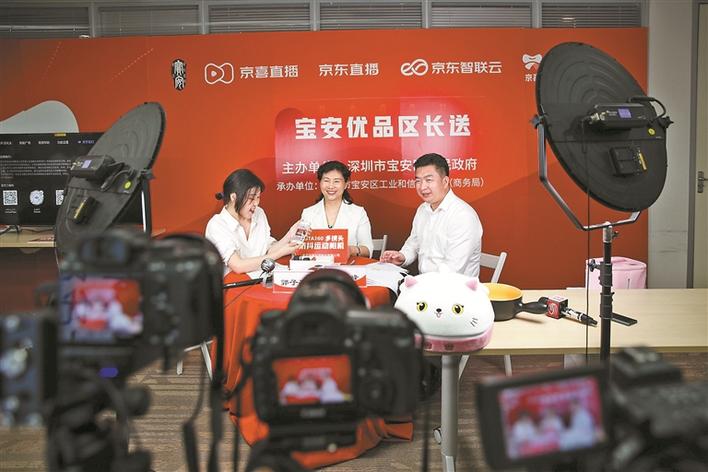 昨晚,在某購(gòu)物平臺(tái)“寶安優(yōu)品區(qū)長(zhǎng)送”直播間內(nèi),寶安區(qū)區(qū)長(zhǎng)郭子平、副區(qū)長(zhǎng)婁巖峰為“寶安優(yōu)品”直播帶貨。