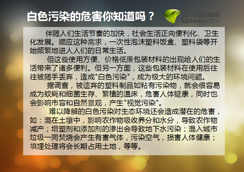 伴隨人們生活節(jié)奏的加快,社會生活正向便利化、衛(wèi)生化發(fā)展。順應這種需求,一次性泡沫塑料飯盒、塑料袋等開始頻繁地進人人們的日常生活。