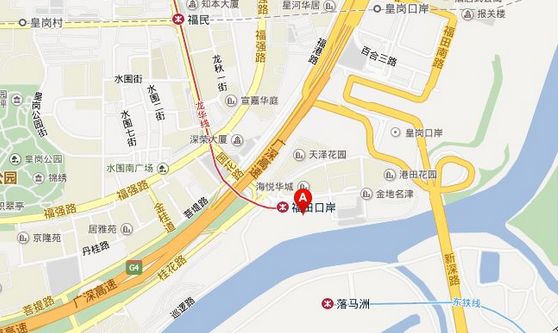 深圳地鐵4號線“福田口岸”站出口即到,52路、91路,203路等公交車也可到達(dá)。